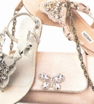 ...Os materiais que adornam as sandálias são verdadeiras joias, criadas com cristais swarovski, pedras acrílicas e resina imitando pedra natural.